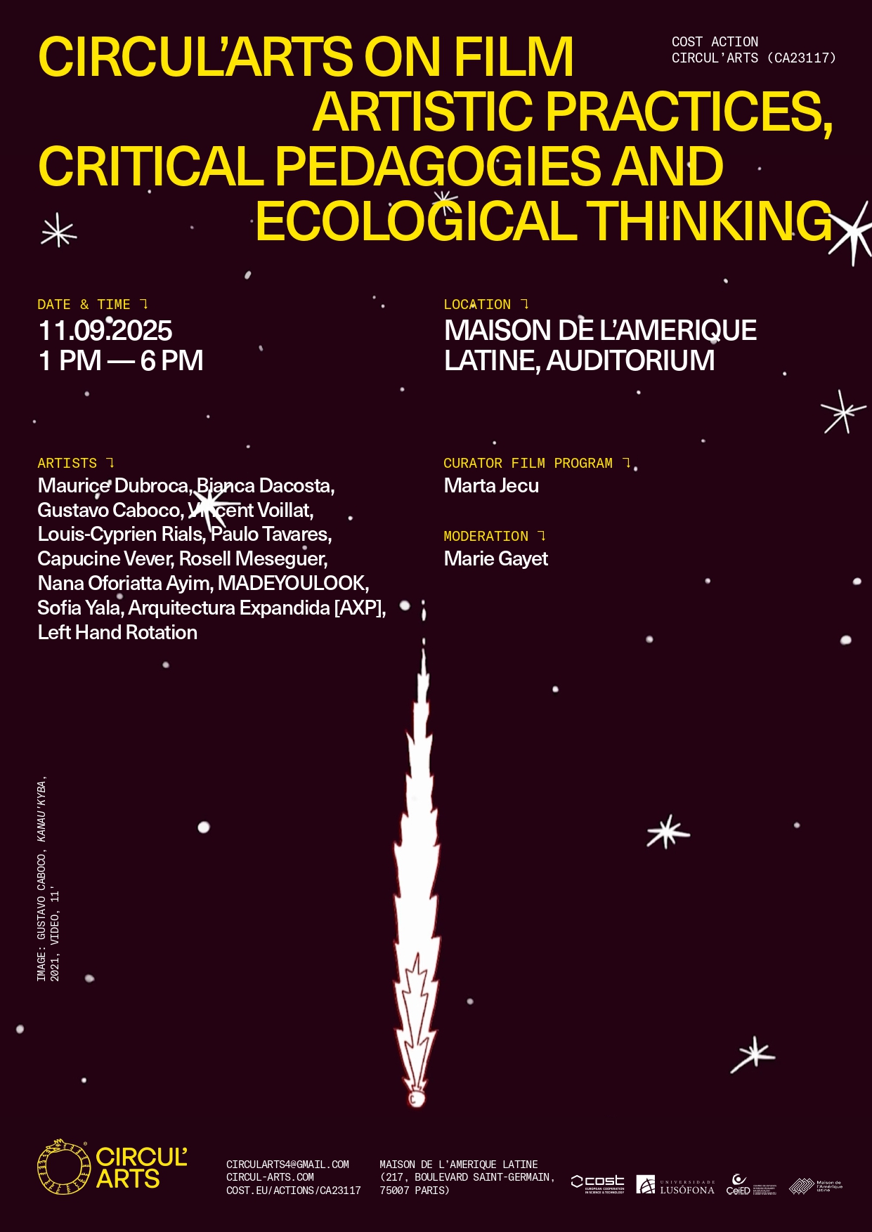 CIRCUL'ARTS Station#1 in Paris included a film screening program at Maison de l'Amerique Latine (11th September 2025), exploring the fusion between human and non-human natures in contemporary artistic production.